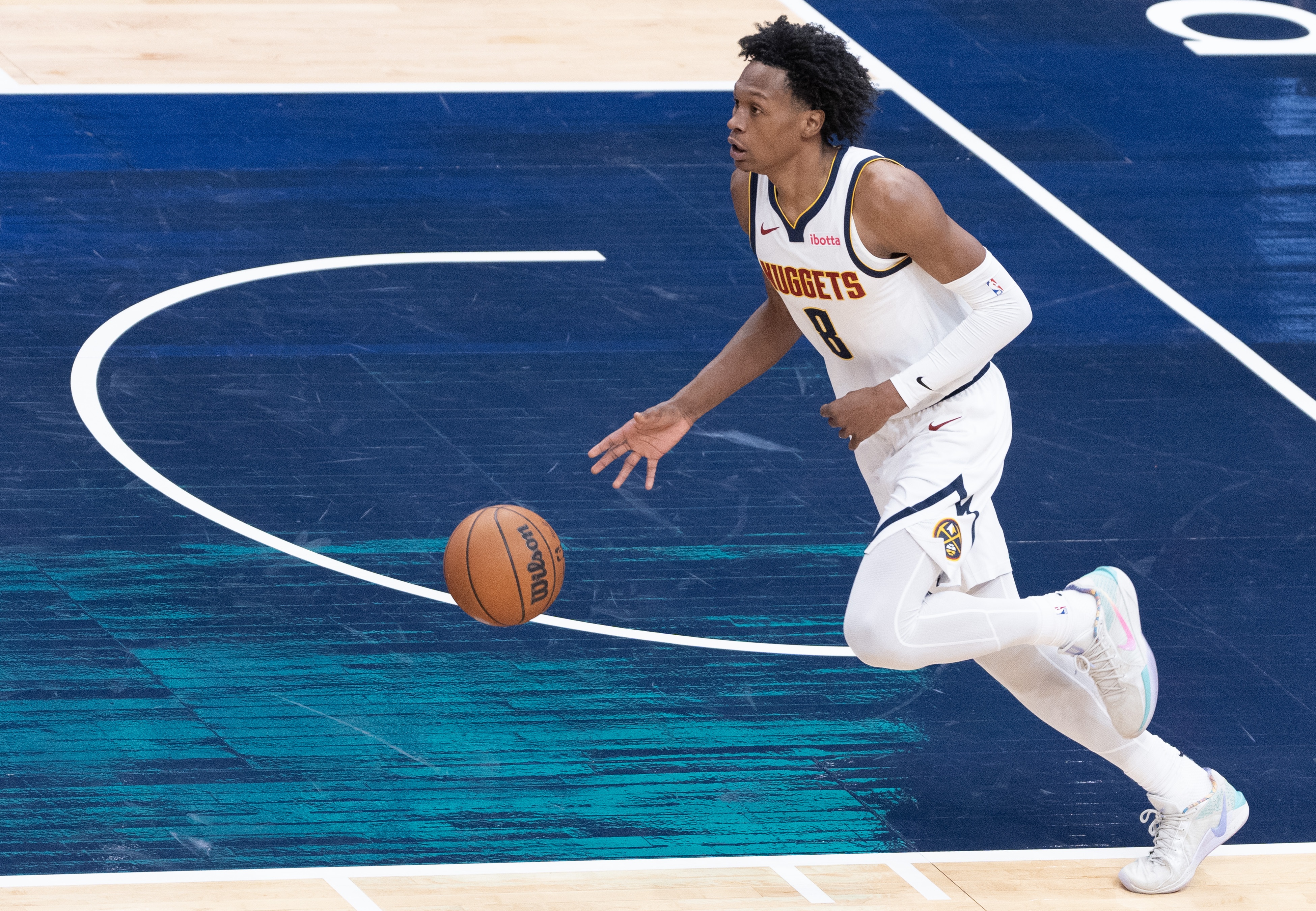 本赛季掘金主力几乎伤了个遍:约基奇、戈登、黄忠、布劳恩、瓦兰,目前戈登和黄忠还在养伤。